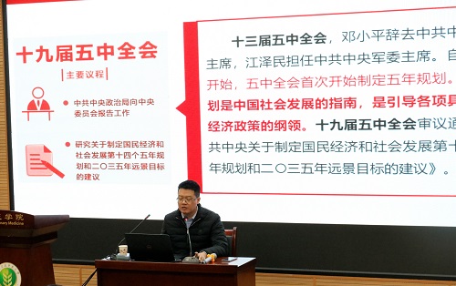 面向全体学生党员,成人短视频 邀请马克思主义成人短视频 杨鹏教授开展全会精神专题辅导。从大会召开的背景和意义讲起,杨鹏教授重点围绕规划和《建议》的主要内容、五中全会释放未来中国发展重要信号两个方面作了详细解读。他强调,党的十九届五中全会站在“两个一百年”奋斗目标的历史交汇点,擘画发展蓝图、规划实践路径、作出战略部署,为夺取全面建设社会主义现代化国家新胜利注入强大思想和行动力量。