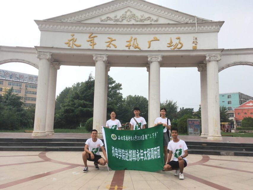 为加强学生实践能力,增长学生社会见识,同时探索中国太极传统文化,2018年8月8日,成人短视频 焦耿豪同学组成社会实践团队赴邯郸市永年区展开为期两天的实践调查。时当炎夏,学子在行动,依旧在路上。