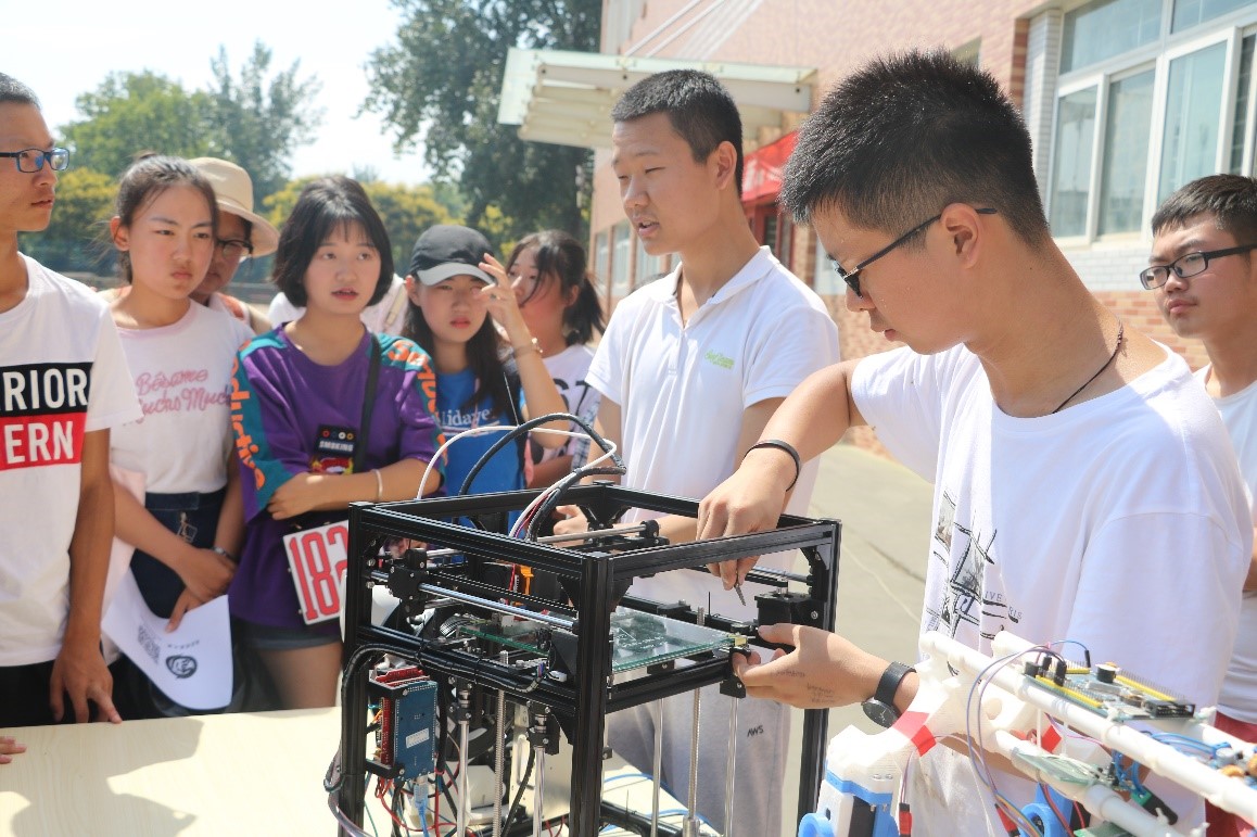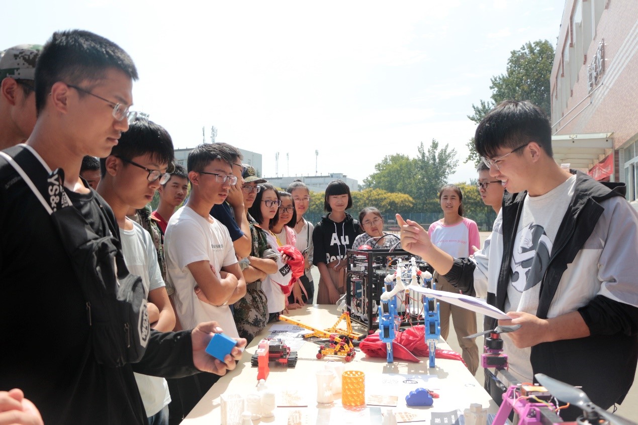 创新引领社会发展,科技把握时代潮流。为激发新生创新意识,强化专业意识,引导让学生将所学知识与实践紧密结合,9月9日,成人短视频 于篮球场组织开展了以“科技创新”为主题的特色科技成果展示,以创客之家的科技创新成果为载体,面向2018级新同学展示了近年来迅猛发展的智能装备与机器人。