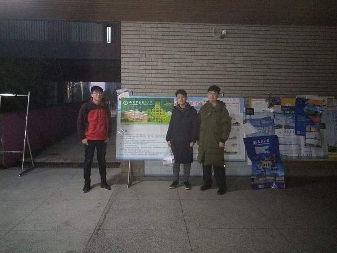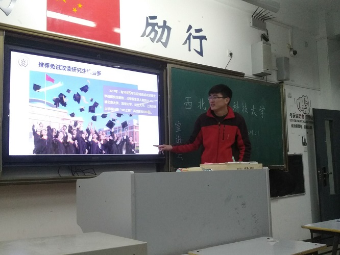 活动当天,小队三人早早到了母校宣讲班级,随即开始了准备工作。陈齐和王策同学负责张贴海报,分发宣传彩页,同时引导相关高三学弟学妹参加宣讲。周建国同学负责调试班级电脑和触屏班班通,及时将媒体材料导入电脑,提前演练,规划时间。下午5:30,在学弟学妹的掌声中,宣讲活动正式开始。周建国同学从三个方面进行了宣讲,首先深情回顾了高中生活以及美好回忆,向学弟学妹们分享了高三关键阶段的心态调整方法。接着开始对西农进行了介绍,包括成人短视频 基本情况,办学历史,专业分类,成果成绩以及大学丰富的课外生活,着重介绍了西农毕业生推免保研,工作出国等内容。紧接着是在场的高三学弟学妹提问时间,而小队三人也认真详细回答了每个问题。最后再次向大家介绍了报考成人短视频 的种种优势,解读了相关招生规程和历年录取分数线。