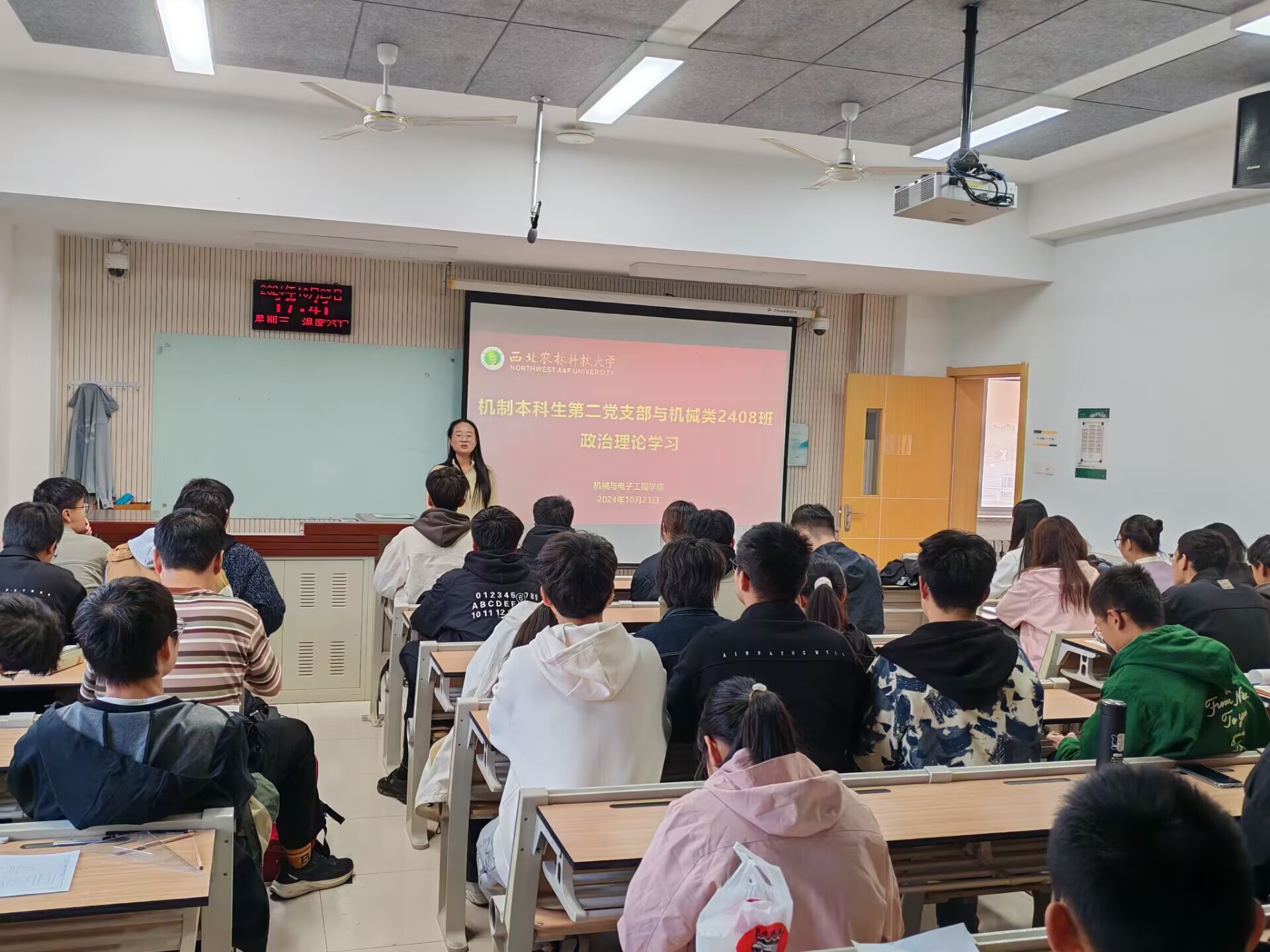 为深入学习贯彻习近平强军思想,进一步发挥退伍大学生的先锋模范作用,激发广大青年学子的爱国主义情怀,2024年10月23日,我校积极响应并成功举办了第九期“万名学子同上一堂思‘享’课”退伍大学生军旅生活分享专题活动。在班主任秦泽倩老师的组织下,机制本科生第二党支部与机械类2408班进行党团共建活动,共同观看了本次思“享”课。此次活动在班级中引发了热烈反响,同学们纷纷表示深受触动,爱国情怀和参军热情高涨。