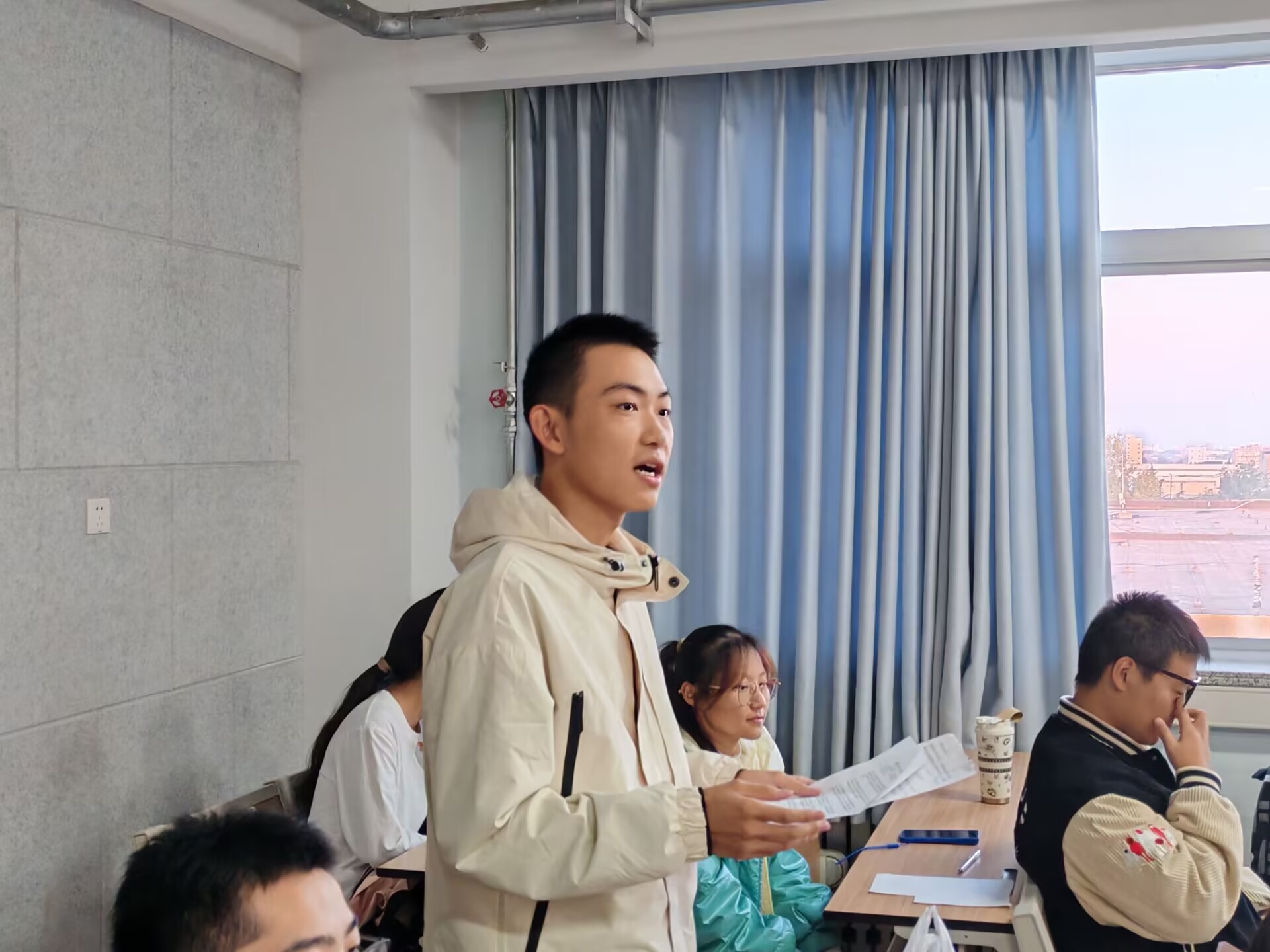 在班级中,同学们通过线上直播观看了这场精彩的分享。李霈轩同学在观看直播后深感振奋与鼓舞,直播中展示的团队合作精神与无畏担当深深触动了他的心灵。他这样说:“退伍大学生们的经历让我认识到,保卫国家不仅是军人的责任,也是我们每一个公民的义务。”