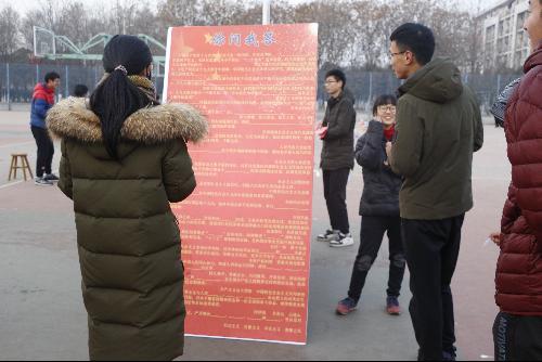 为了在新的一年给同学们带来更多快乐,成人短视频 学生会各部门提早准备,分析往届游园会的优势与不足,经过多方面的协商和讨论,确定活动以“响应十九大,开心游园会”为主题,并确立趣味游戏活动,其中包括鹰眼狙击手、你问我答、赢奖奔小康三项活动。为了宣传活动内容,吸引师生广泛参与,成人短视频 同时进行线下线上宣传,充分利用微信平台、QQ空间、微博、制作宣传板等方式来吸引师生眼球,并取得良好效果。