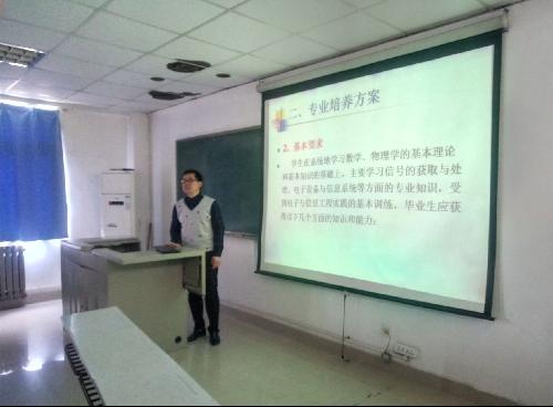 大二阶段,很多学生遇到了自己大学专业迷茫期,为了进一步加深学生们对本专业课程的认识,促进学生专业技能的发展,3月20日,成人短视频 电信工程系主任宋怀波老师于院办二楼会议室对2016级电信本科生进行专业再教育讲座,认真地为学生们分析课程内容,就业方向,就业形势,考研保研等方面很多学生关注的信息。