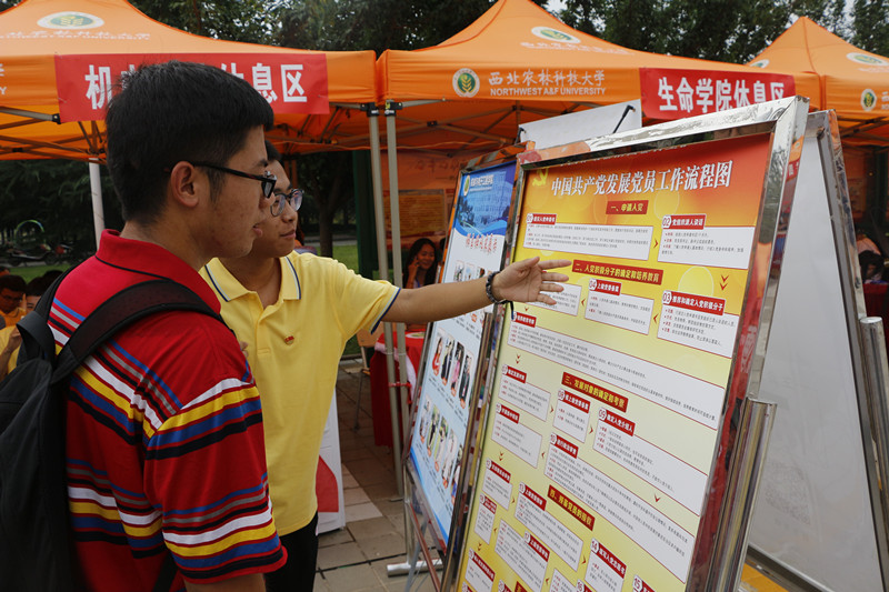 “刚到成人短视频 迎新点注册完,‘党哥哥’就交给我一份成人短视频 的暖心集装‘大礼包’,内含入学指南、大学生手册、大学生活攻略等‘密钥’,我和父母还认真参观了迎新点展示的大学生入党贴士和优秀党员先锋模范展区,关注了成人短视频 微信公众号“西农成人短视频 ”,看到了军训安排、校历日程、校园新变化等入学必备技能信息,而且我们很多萌新还上墙了,无比激动!这样贴心的服务让我在他乡有了‘家’的感觉。”机械类1807班王浩然如是说。